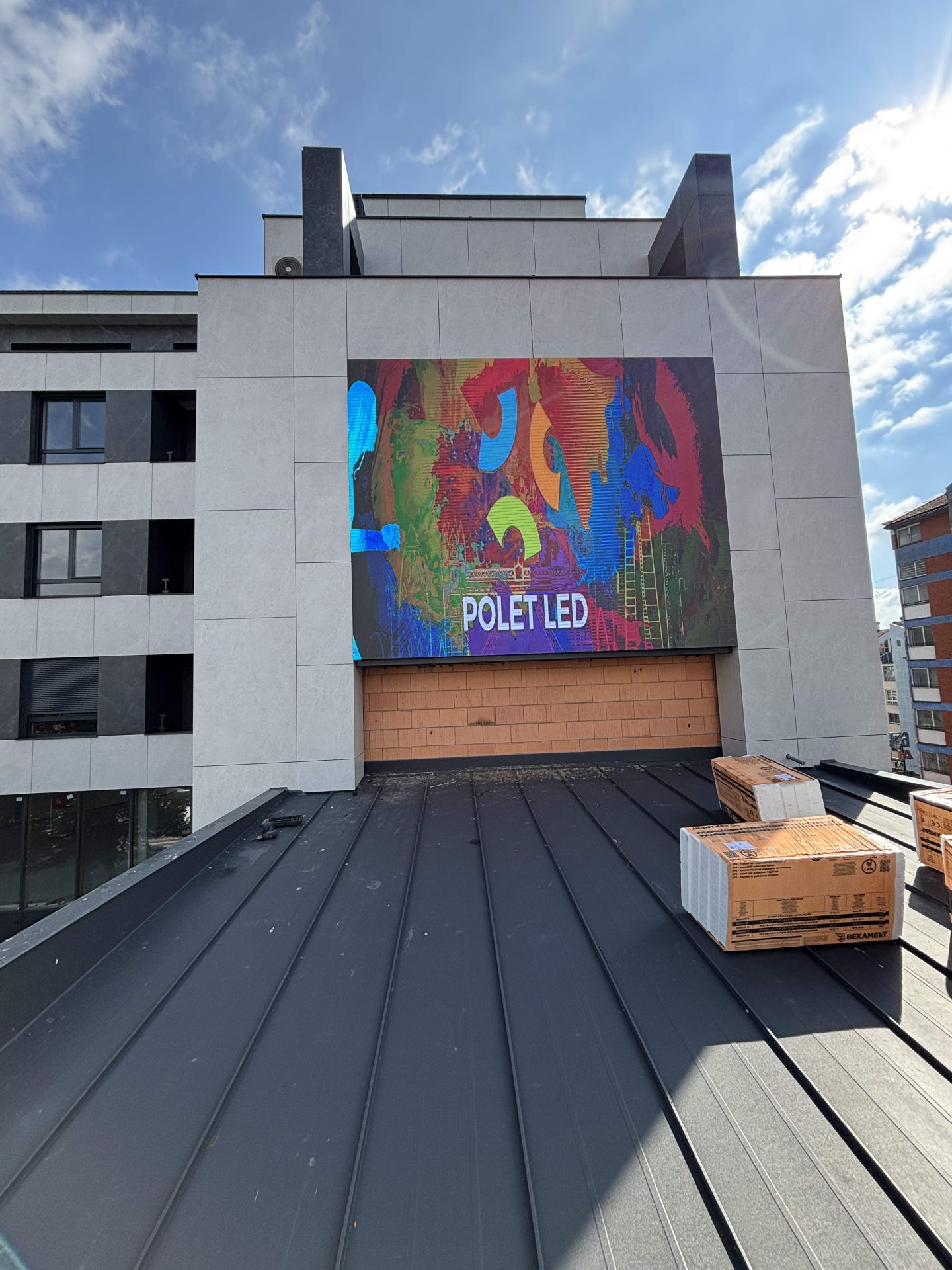 POLET LED designed and installed a high-resolution LED screen seamlessly integrated into the building’s façade. The screen was carefully matched to the building’s colors and architectural lines, providing dynamic visual presence and digital engagement.