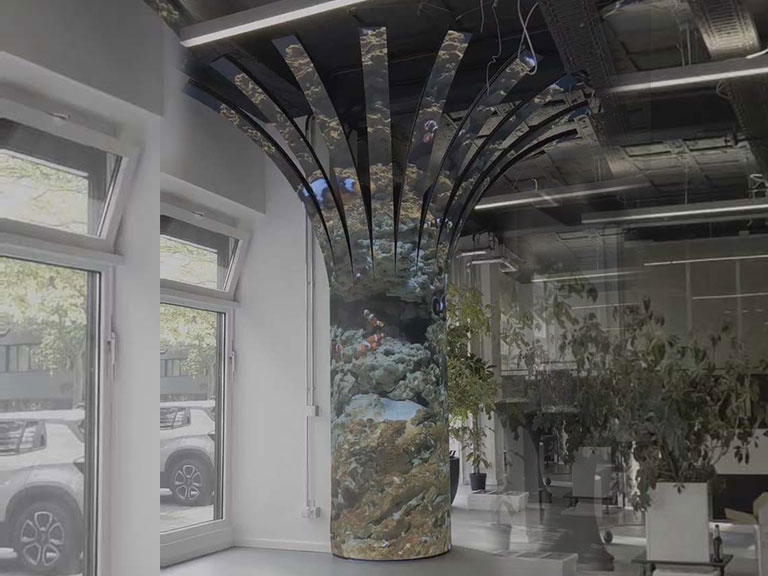 Zahvaljujući POLET fleksibilnim LED modulima Ph2.5, instalacija pruža izuzetno oštru sliku, visoku frekvenciju osvežavanja i savršeno glatke zakrivljene površine, prikazujući vrhunsko inženjerstvo i naprednu LED proizvodnju svetske klase.