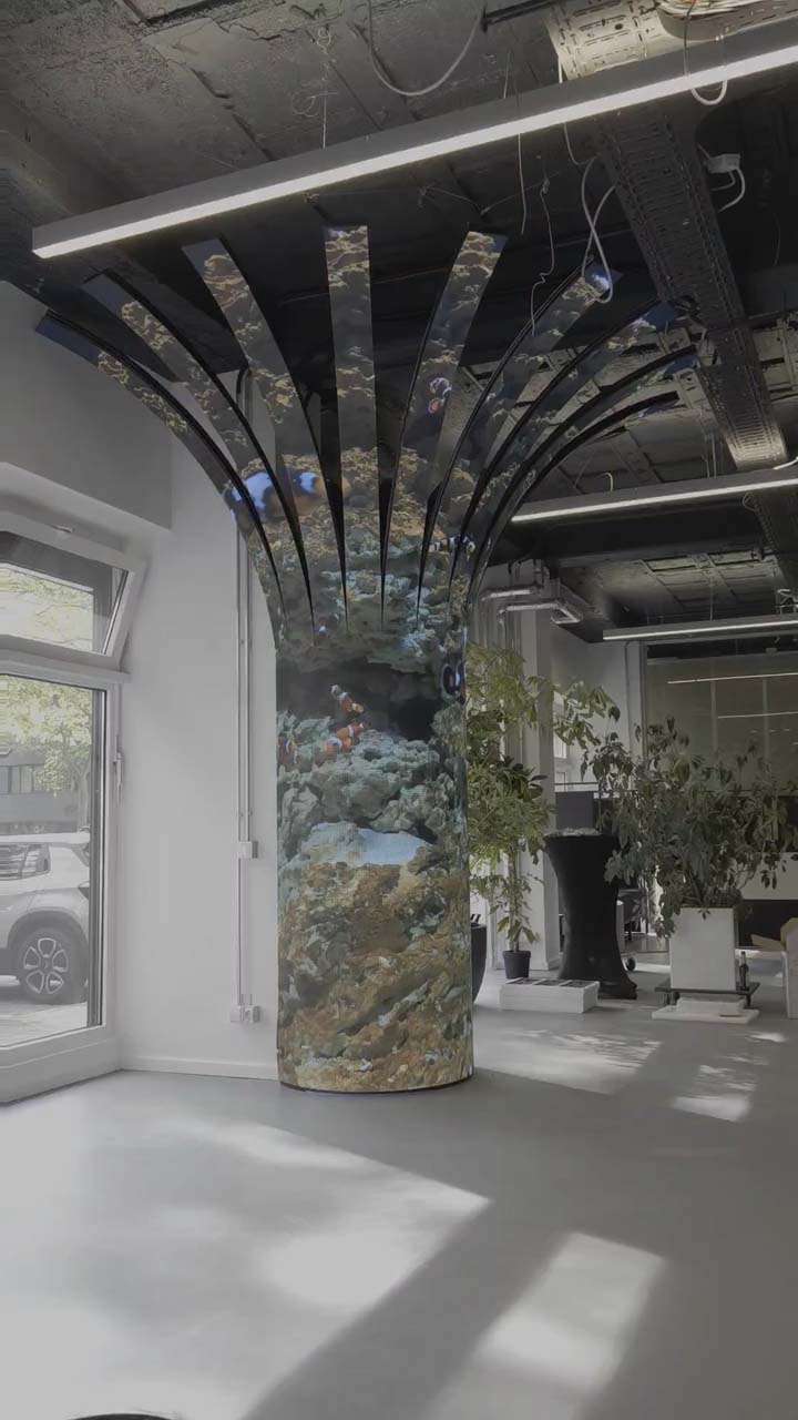 Zahvaljujući POLET fleksibilnim LED modulima Ph2.5, instalacija pruža izuzetno oštru sliku, visoku frekvenciju osvežavanja i savršeno glatke zakrivljene površine, prikazujući vrhunsko inženjerstvo i naprednu LED proizvodnju svetske klase.